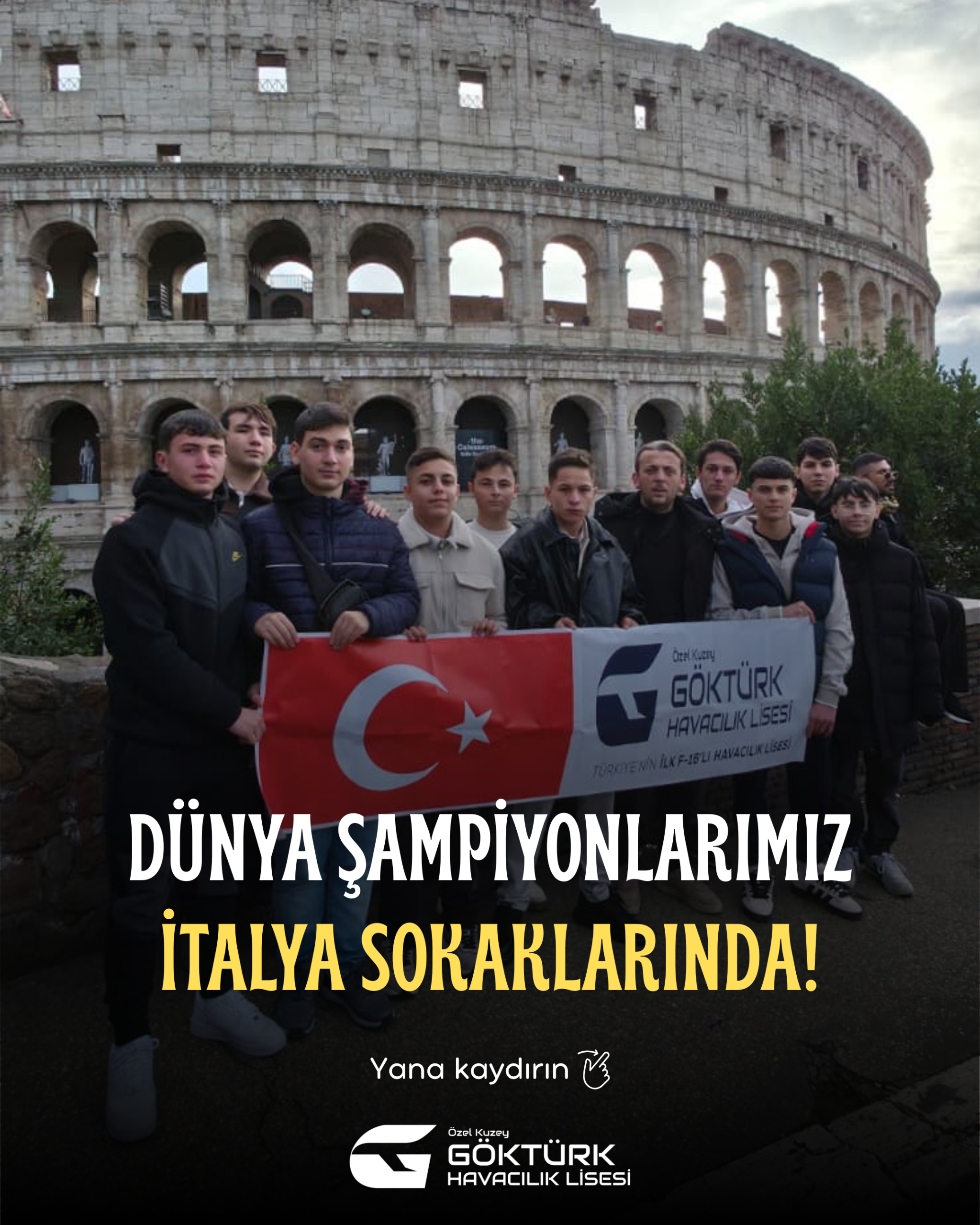 Dünya şampiyonu öğrencilerimiz, İtalya’nın tarihi sokaklarında okulumuzu ve ülkemizi en güzel şekilde temsil ediyor. Bu gurur hepimizin 🇹🇷